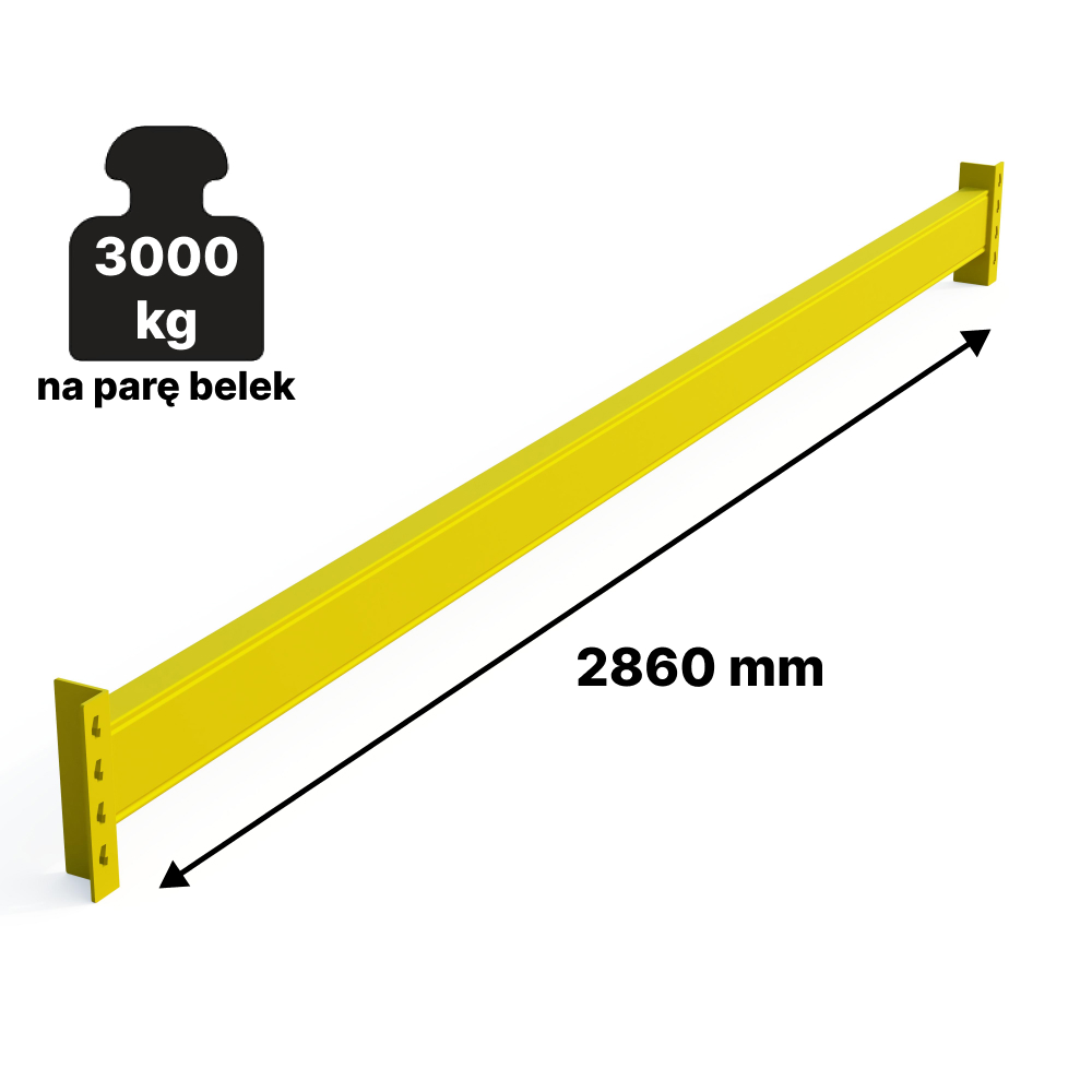 - Nośność – 3000 kg na parę belek (ok. 1000 kg na paletę)